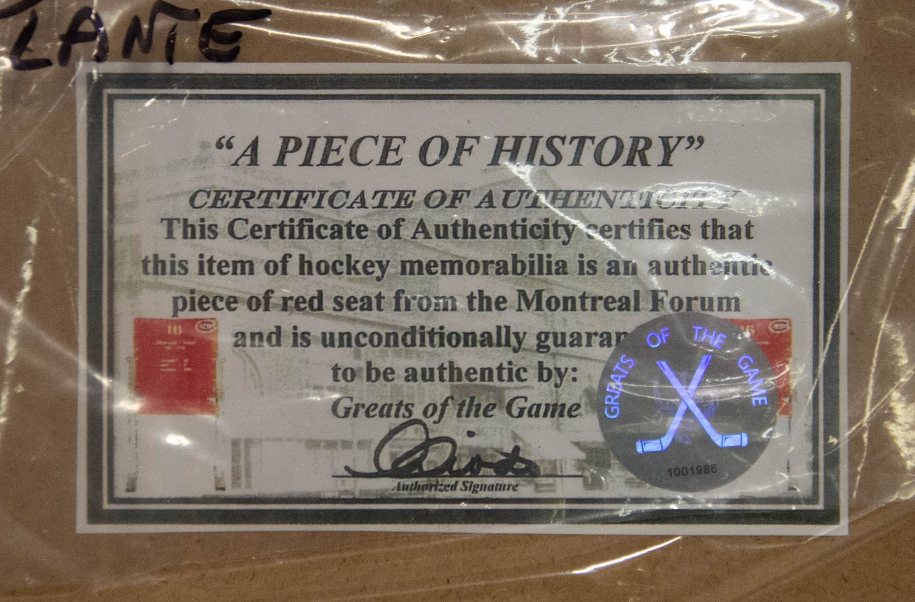 USED SEAT COA COA: GREATS OF THE GAME 12.5" X 15" **ALL ITEMS MUST BE REMOVED BY 5PM SATURDAY, NOVEMBER 16TH 2024. ALL REMAINING ITEMS WILL BE SUBJECT TO A $6.00 PER DAY STORAGE CHARGE. ANY ITEMS REMAINING AFTER MONDAY, DECEMBER 2ND 2024 WILL BE CONSIDERED FORFEITED. NO REFUNDS WILL BE ISSUED FOR FORFEITED ITEMS. TO SCHEDULE A PICK UP APPOINTMENT CLICK HERE