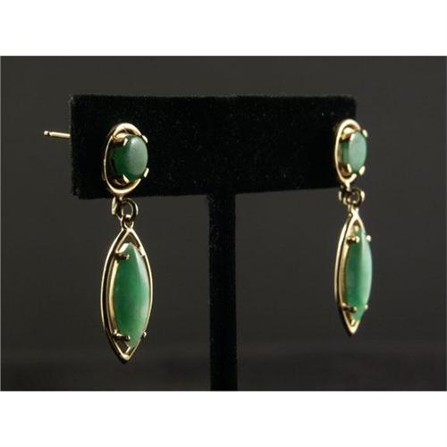 EARRINGS: Pair of lovely 14K yellow gold and polished jade earrings. Appraisal included.