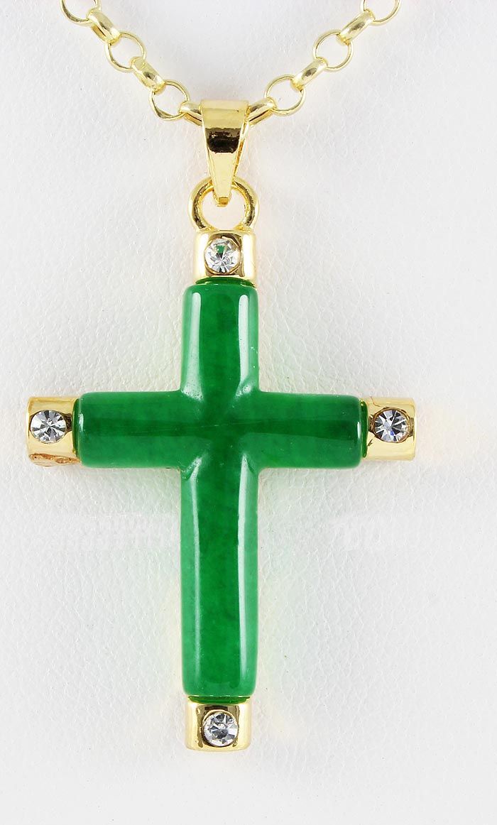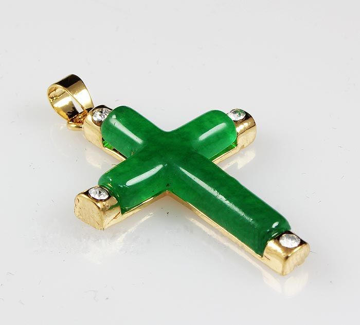 JADE CROSS 3.20GRAMS IN GOLD PLATED PENDANT **|**|** 1.18X0.89 INCHES GOLD PLATED JADE CROSS WITH CZ ROUND SHAPE DIAMOND ; MSRP: $100