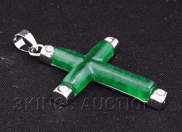 JADE CROSS 3.23GRAMS IN SILVER PLATED PENDANT **|**|** 1.20X0.87 INCHES SILVER PLATED JADE CROSS WITH CZ ROUND SHAPE DIAMOND ; MSRP: $300