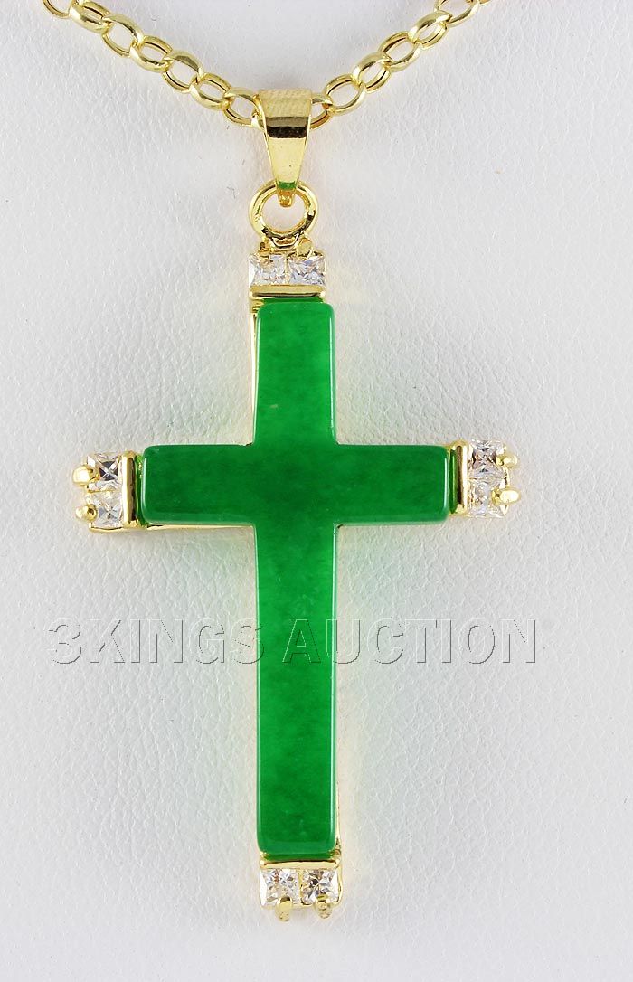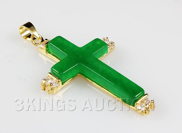 JADE CROSS 3.88GRAMS IN GOLD PLATED PENDANT **|**|** 1.44X0.95 INCHES GOLD PLATED JADE CROSS WITH CZ PRINCESS CUT DIAMOND ; MSRP: $300