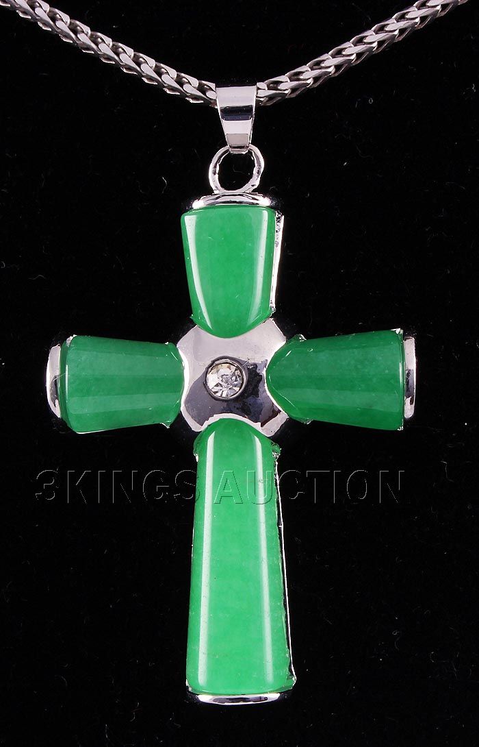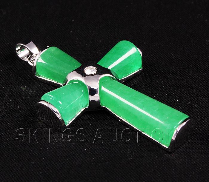 JADE CROSS 6.61GRAMS IN SILVER PLATED PENDANT **|**|** 1.37X1.00 INCHES SILVER PLATED JADE CROSS WITH CZ ROUND SHAPE DIAMOND ; MSRP: $300