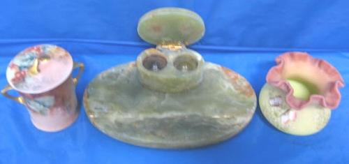 JADE OVAL, JAR W/LID, HAND PAINTED POT