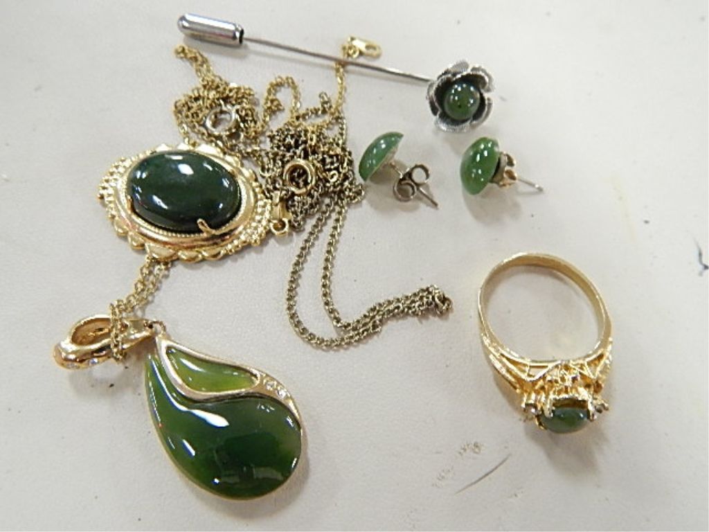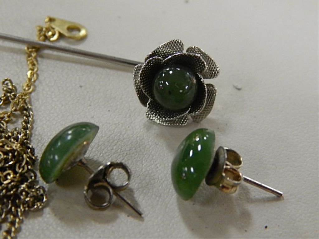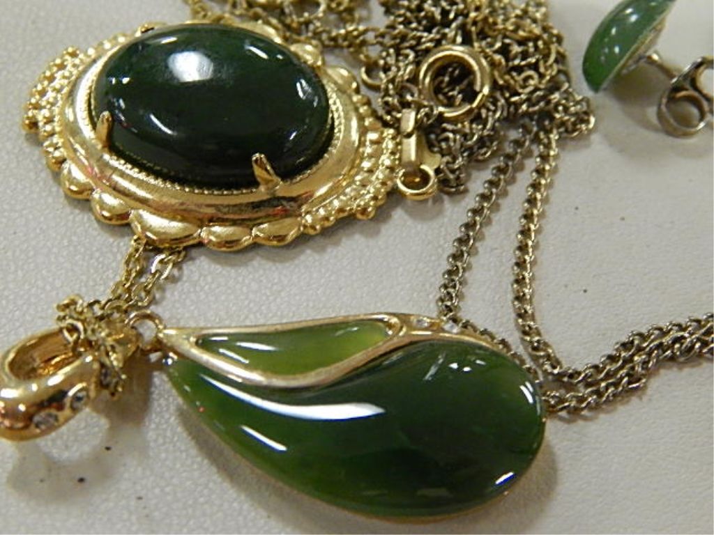 JADE STONE JEWELERY SET - INCLUDES 2 NECKLACES, PIN & EARINGS