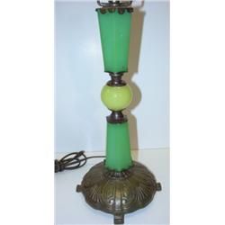 JADEITE ART DECO TABLE LAMP. Good overall condition. 23.25" H
