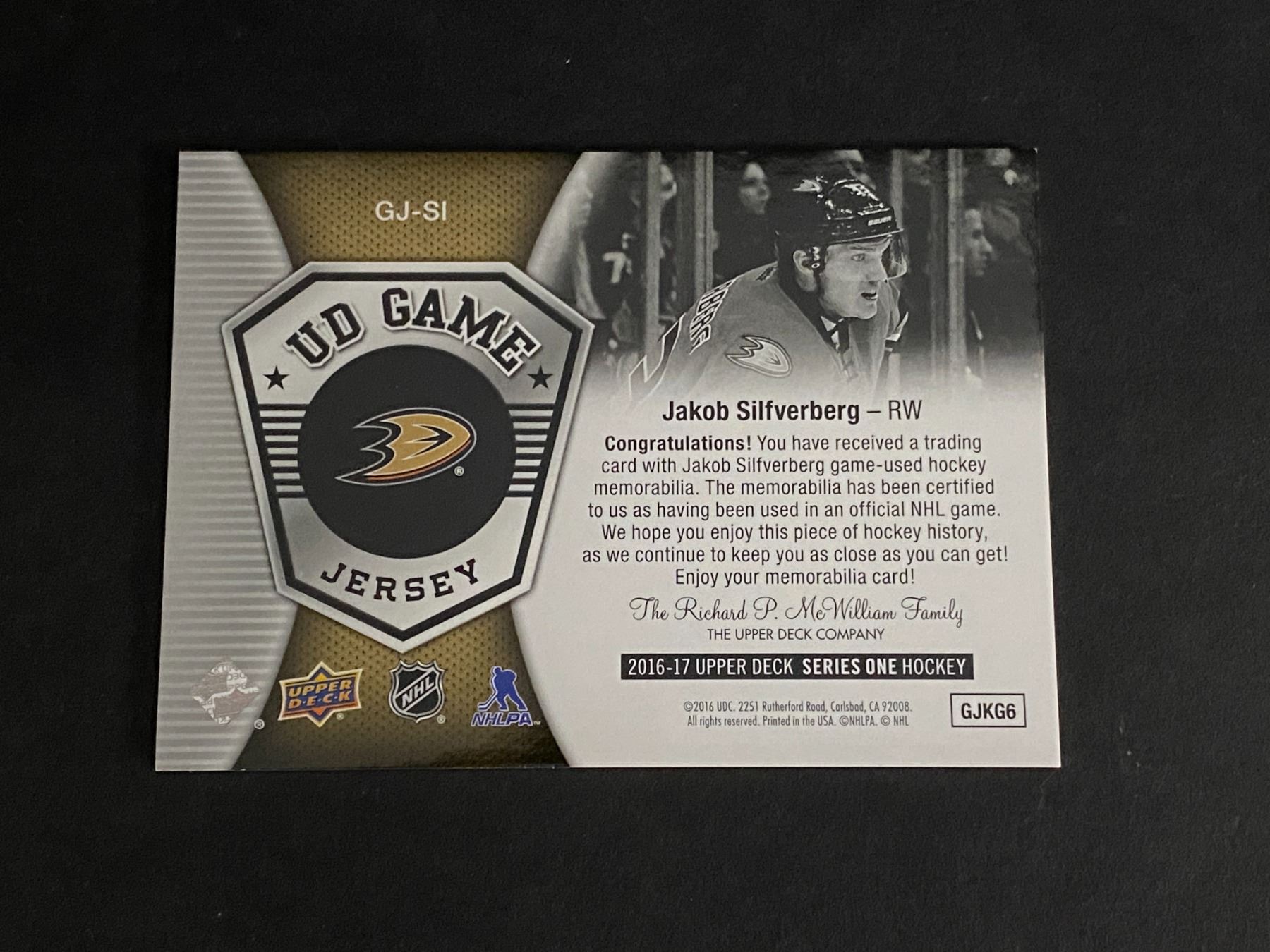 JAKOB SILFVERBERG JERSEY CARD 2016/17 U.D SERIES 1 HOCKEY