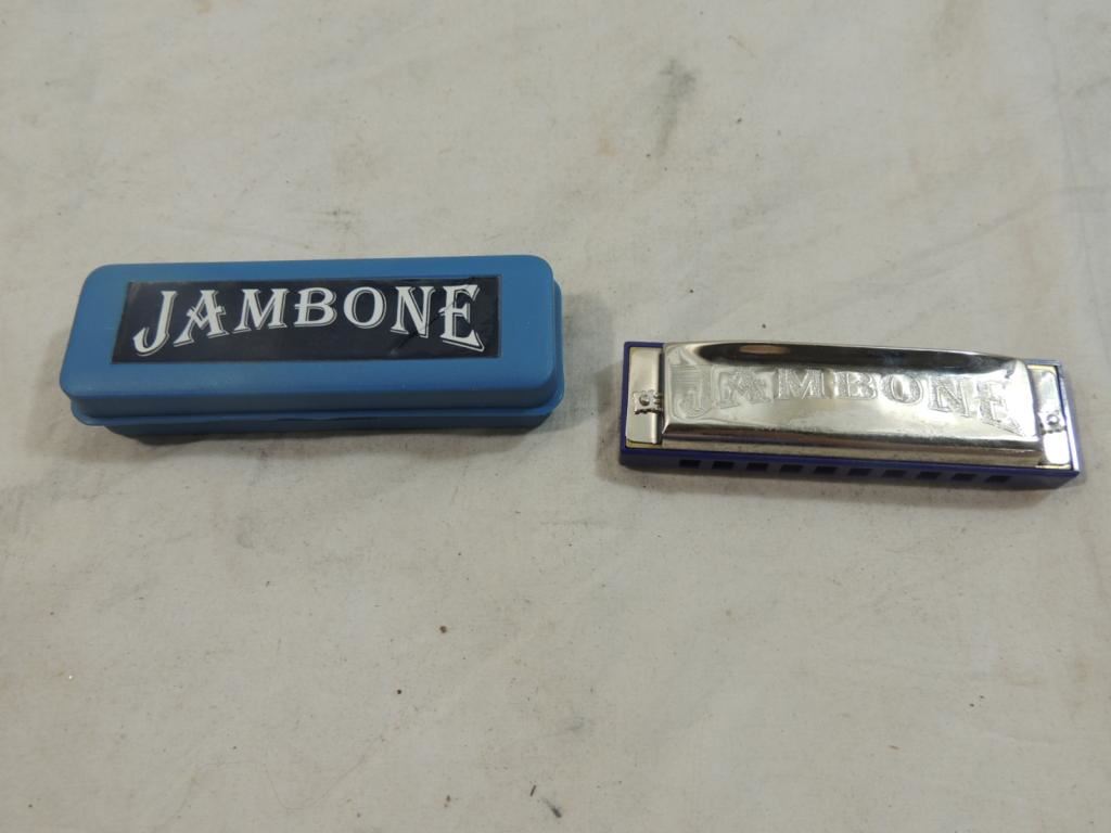 JAMBONE HARMONICA IN CASE, HARD TRAVEL CASE, HARMONICA, MUSICAL INSTRUMENT, AS SHOWN SEE PHOTO FOR MORE DETIALS.