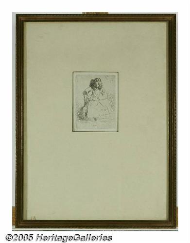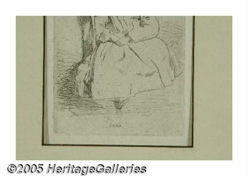 <B>JAMES ABBOTT MCNEILL WHISTLER (American 1834-1903)</B></I><BR>Annie Seated<BR>Etching on paper<BR>8.125in. x 5.75in.<BR>Signed in the plate lower left<BR>Label on reverse: From the Vincent Price Collection, Sears Roebuck and Co.<BR><BR>Condition Report: Overall very good condition<BR><BR>David Dike: Agree with description, condition and value estimate.<BR>Brian Roughton: No problem with authenticity. Condition as noted.<BR>