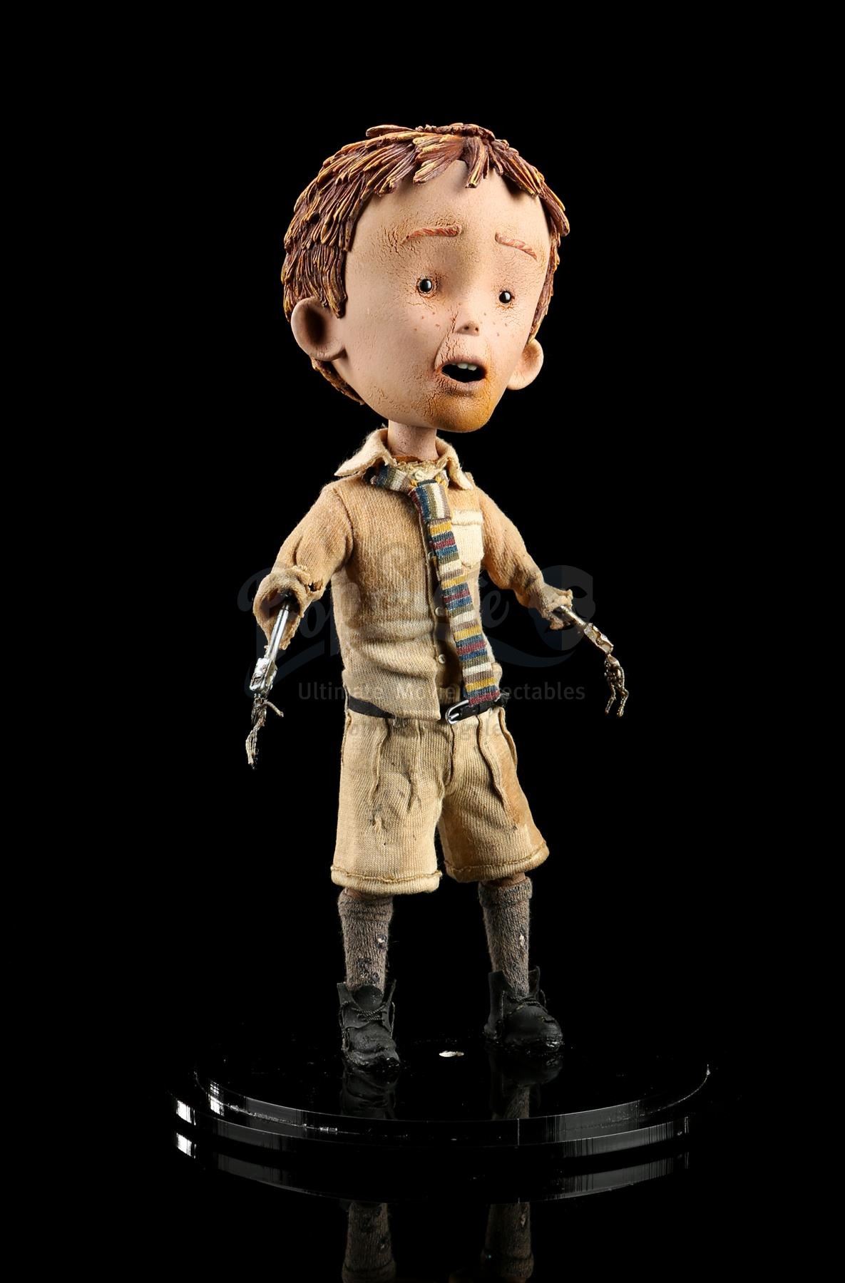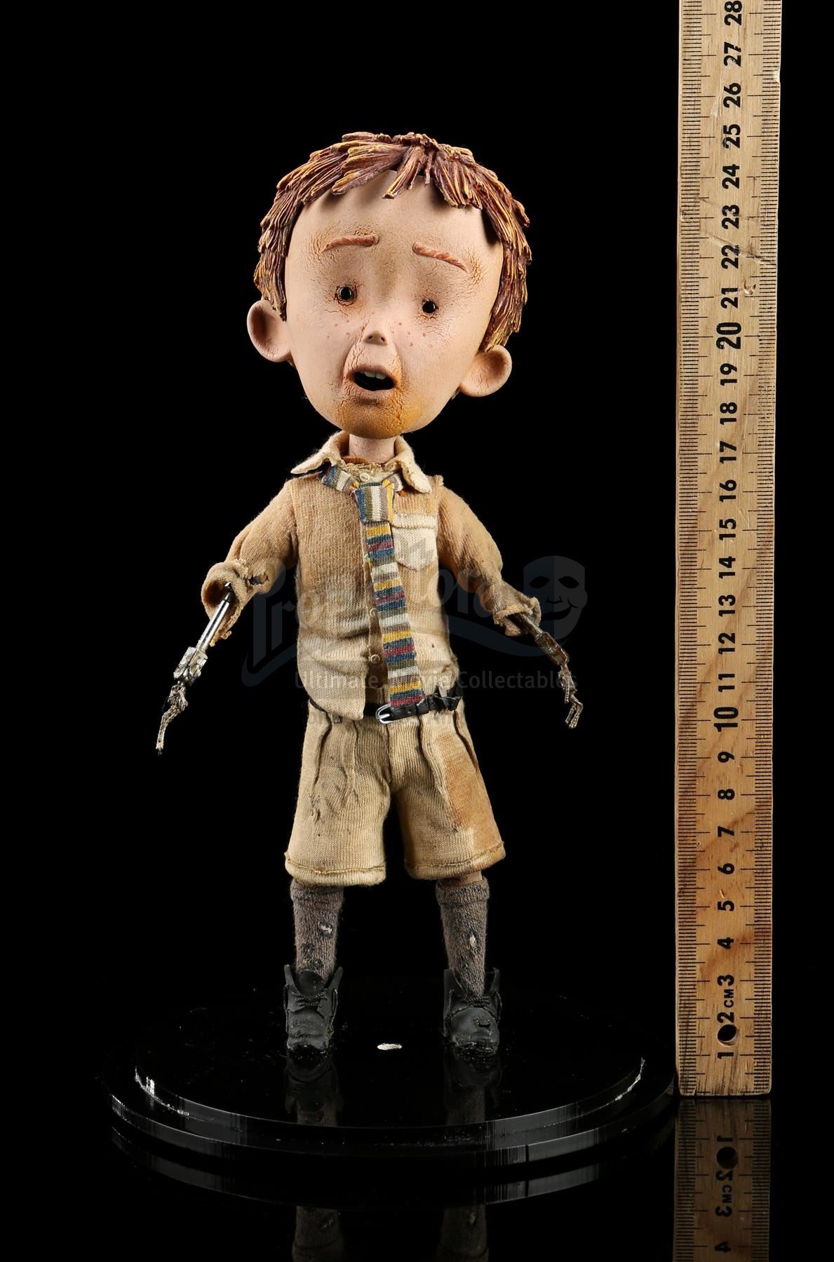 A James Henry Trotter (Paul Terry) stop motion puppet from Henry Selick's James and the Giant Peach. James wore his shirt, shorts, and tie throughout the film, and wore soiled versions during the final confrontation with the rhino and the peach's final landing in New York City.