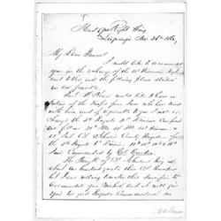 <b>54. JAMES B. MCPHERSON</b> (1828 - 1864) Union major general who fought in Grant's Tennessee campaigns, let the right wing at Vicksburg, and was killed in battle at Atlanta. Rare war-date A.L.S. "<i>Jas. B. McPherson</i>" 2pp. 4to., "<i>Head Qrs. Right Wing</i>", Lagrange, Tn, Nov. 26, 1862 to Gen. Charles S. Hamilton who was commanding the force's left wing. In part: "<i>...I would like to accommodate you in the exchange of the 12th Wisconsin Regt....Gen'l McKean would like to have a portion of the troops from Iowa who have served with him...I will exchange the 3rd Brigade 4th Division...for the 3rd brigade 6th Division... commanded by Col. Crocker. The strength of Col. Johnson's Brig. is about one hundred greater than Col. Crocker's but I am willing to make this sacrifice to accommodate your wishes, and it will give you two good Brigade Commanders in Johnson & Gresham...</i>". Folds, expertly inlaid, and in very good condition.<b>$1,500-2,000</b>