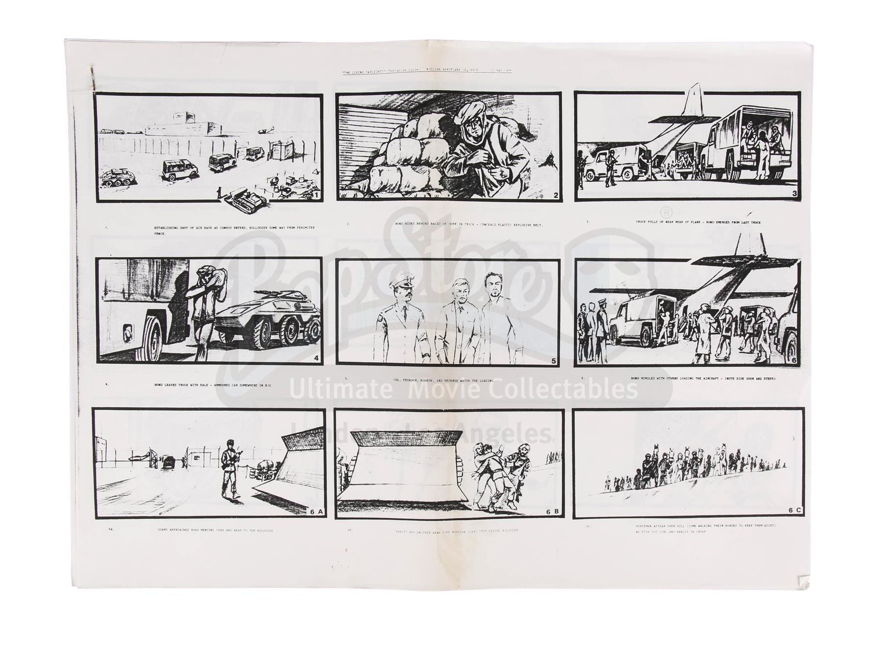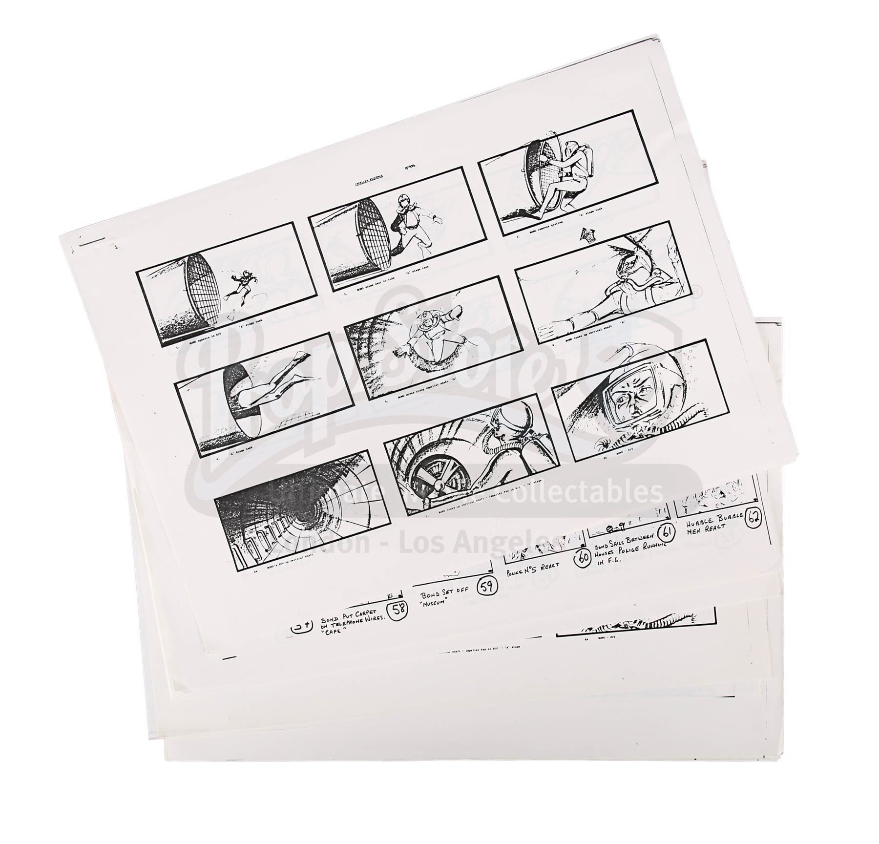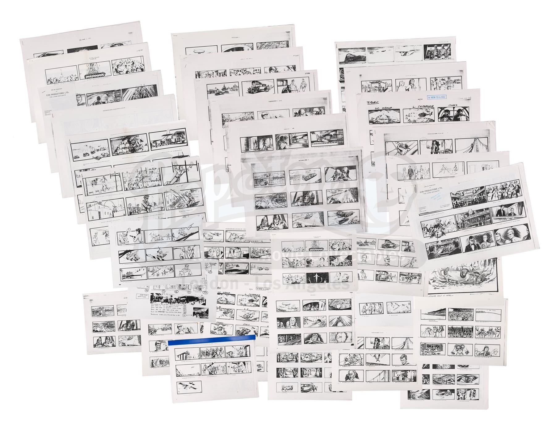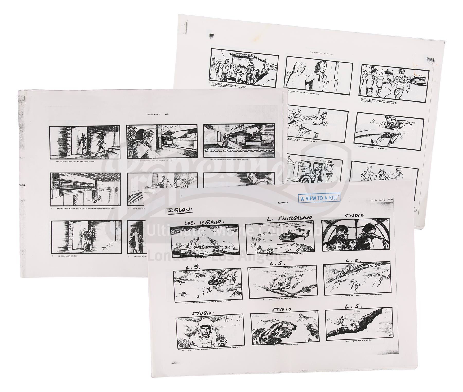 A set of action storyboards from the production of two John Glen-directed James Bond films, A View to a Kill and The Living Daylights.