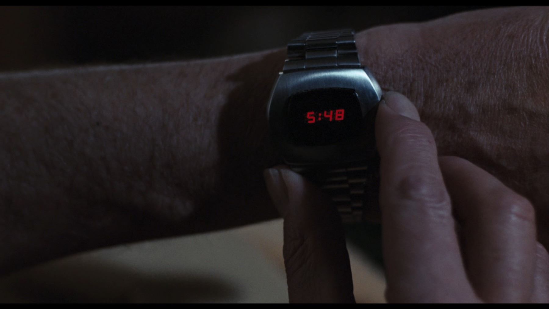 Bond sported his Hamilton Pulsar watch near the beginning of the film, when M (Bernard Lee) and Miss Moneypenny (Lois Maxwell) visited his apartment and ordered him to go to New York on a mission to investigate the deaths of three MI6 agents. Bond demonstrated his watch when he pressed the button on the side, which revealed the time "5:48".