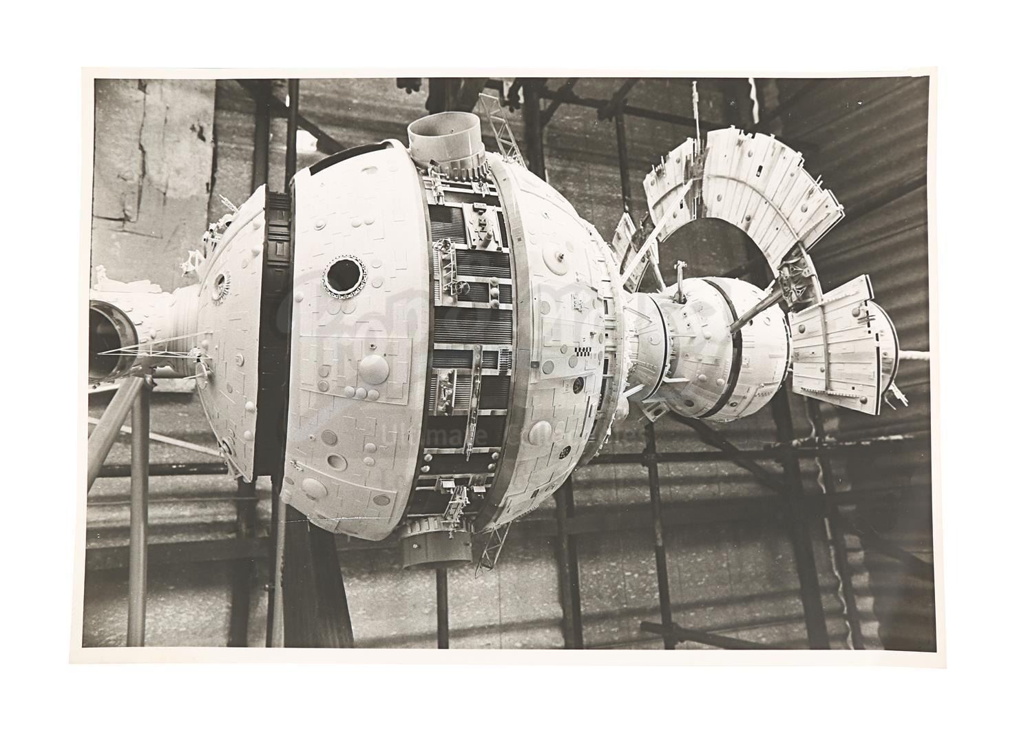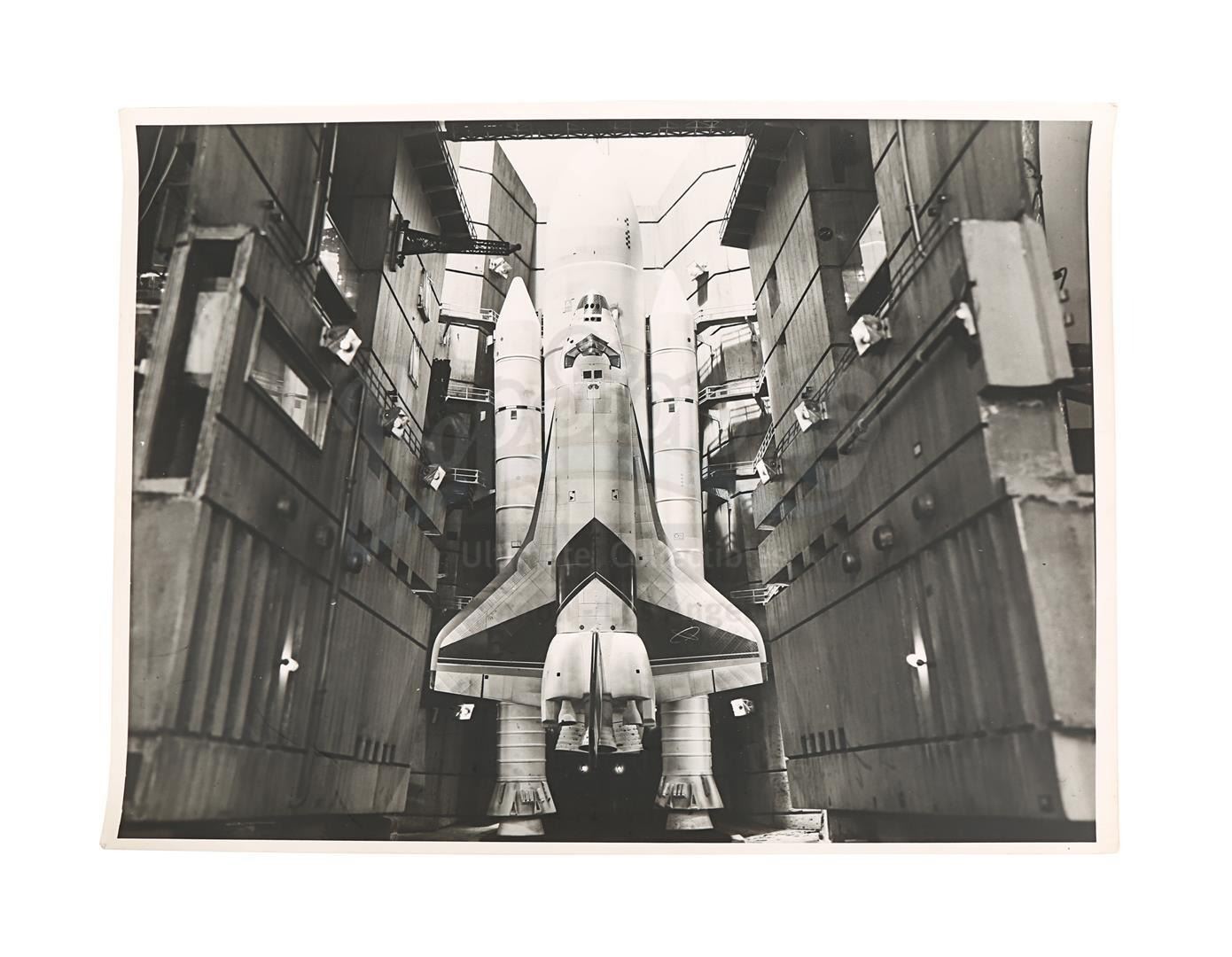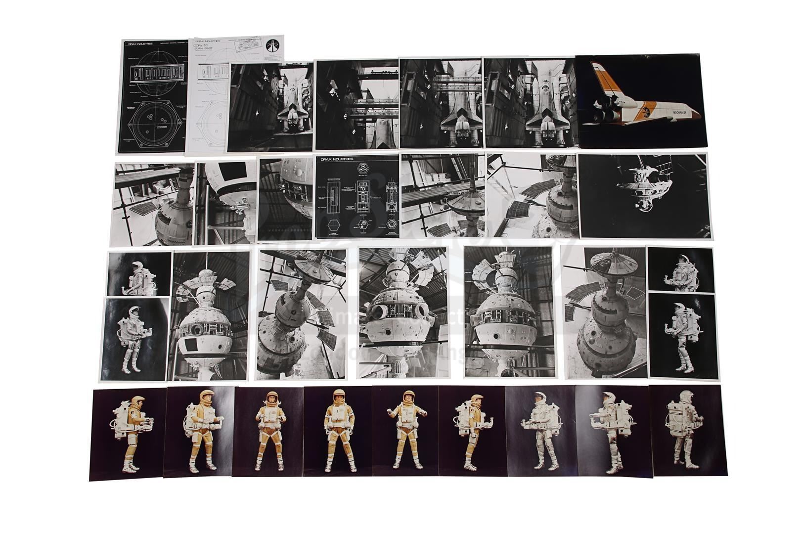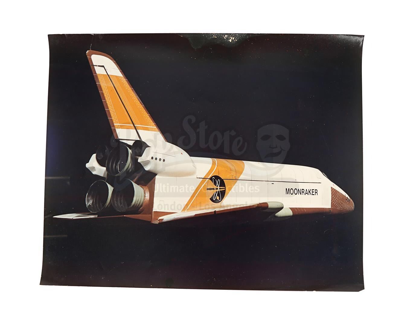 A set of stills from the production of Lewis Gilbert's Bond film Moonraker. The set contains 35 behind-the-scenes images of the Moonraker shuttle, space station and space soldier miniature models.