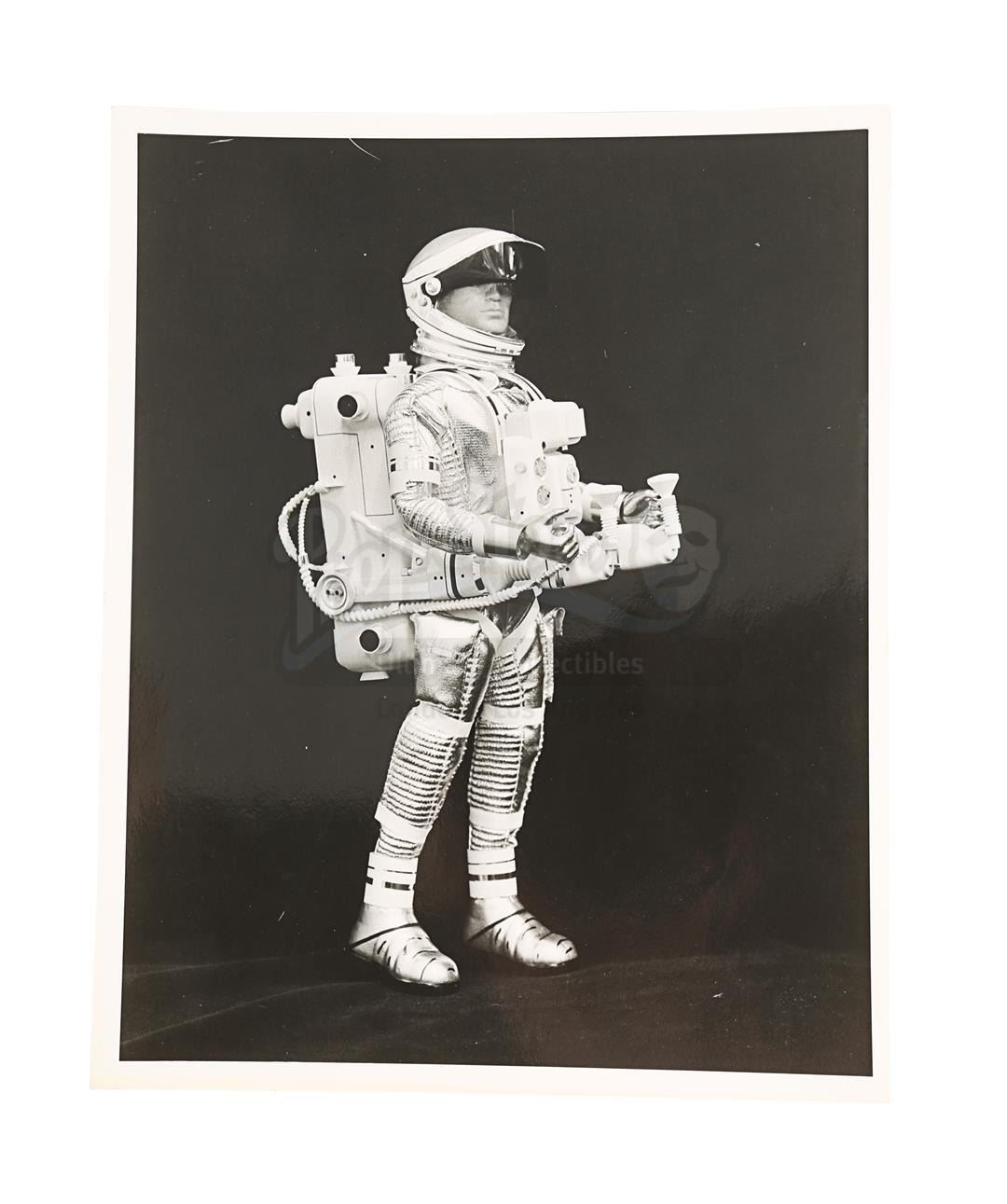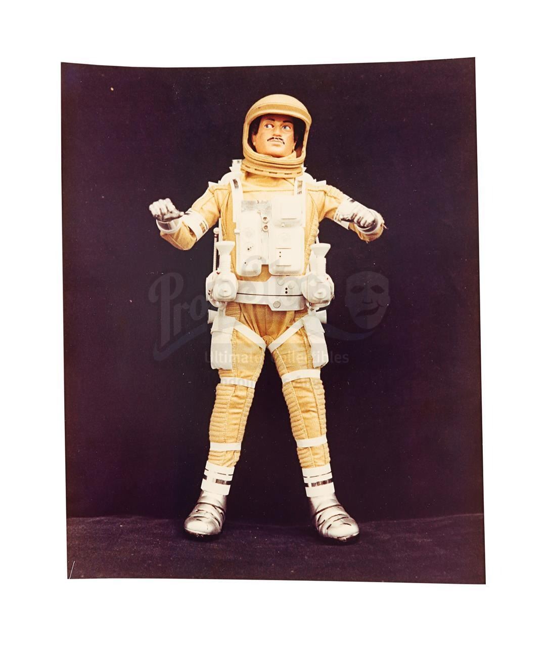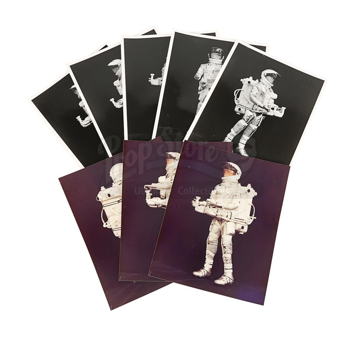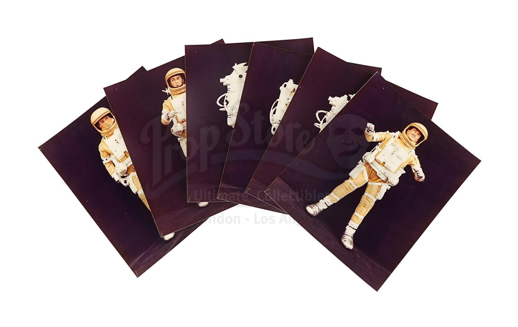 The shuttle and spacesuit stills are kept together in a black plastic folder, and the larger shuttle stills are in a plastic wallet. The stills have some wear from production use, including minor creasing and fingerprints. Dimensions (largest stills): 40.5 cm x 30 cm (16" x 11 3/4"); (smallest stills): 25 cm x 20 cm (9 3/4" x 8")