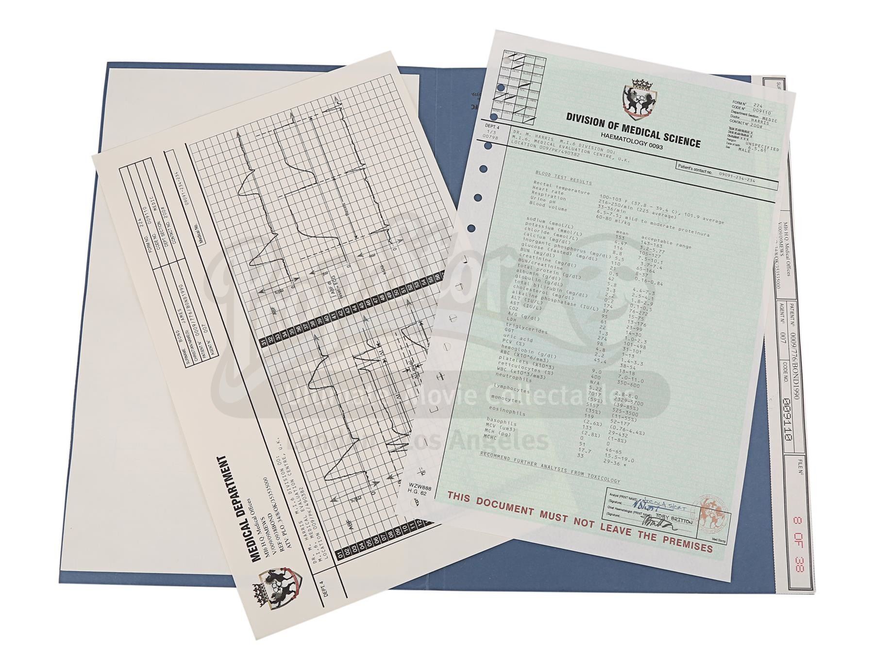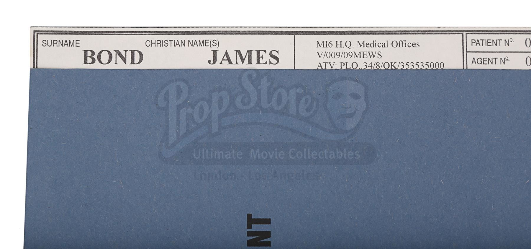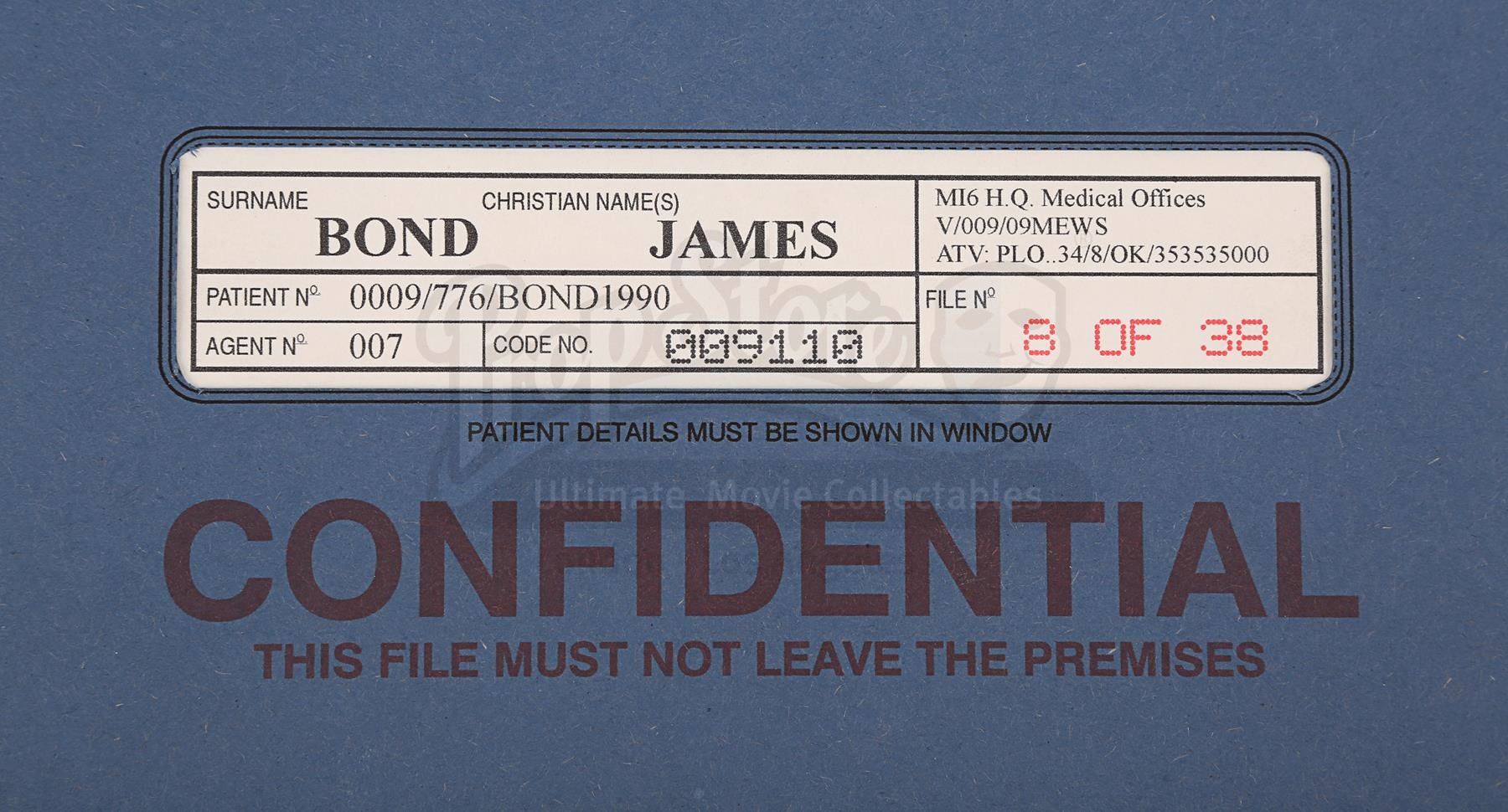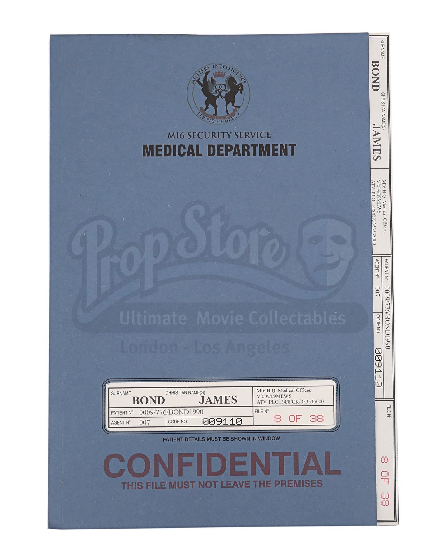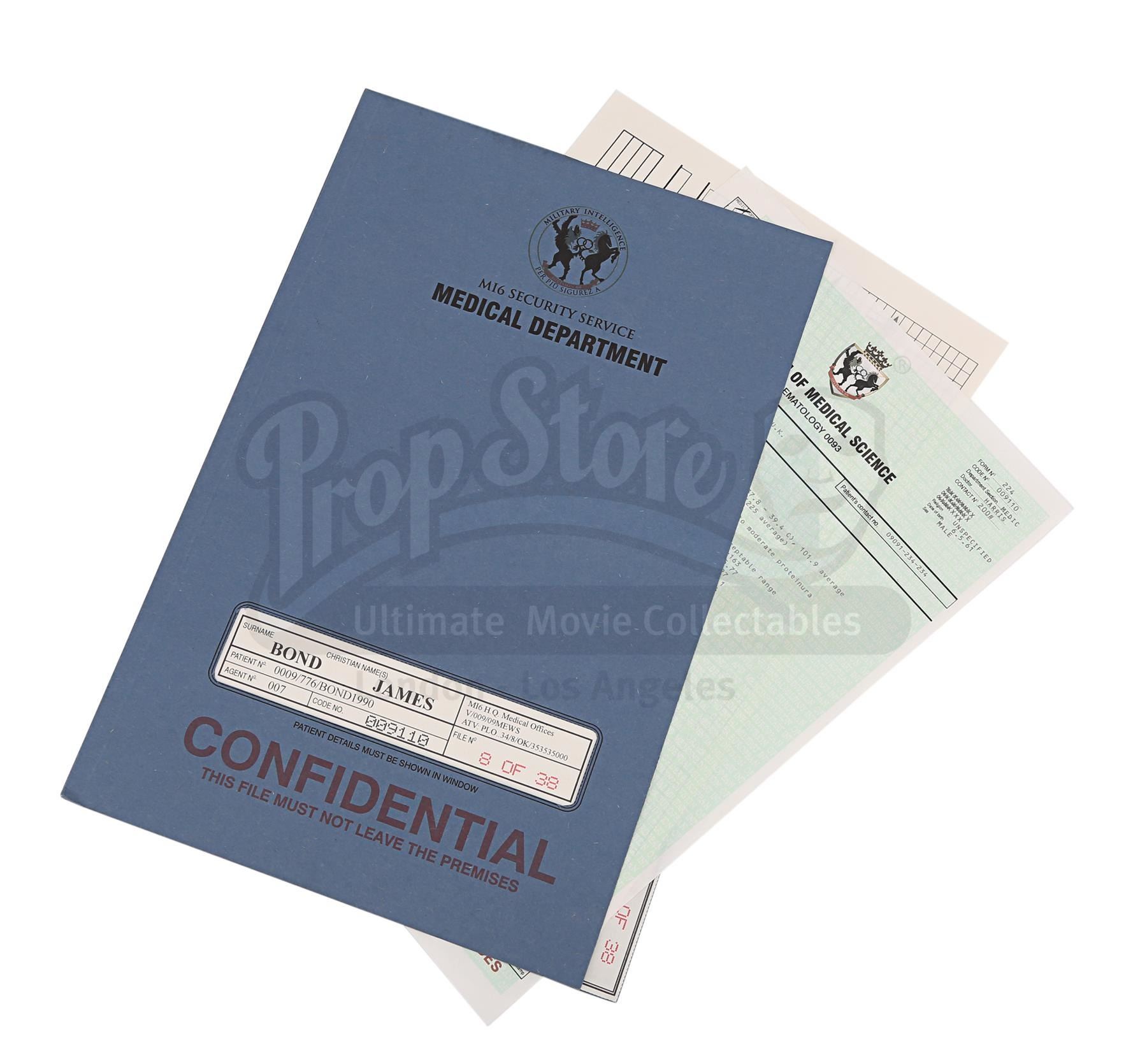 James Bond's (Pierce Brosnan) medical file from Roger Spottiswoode's Bond movie Tomorrow Never Dies. Files were used as set dressing around the MI6 offices and control rooms.