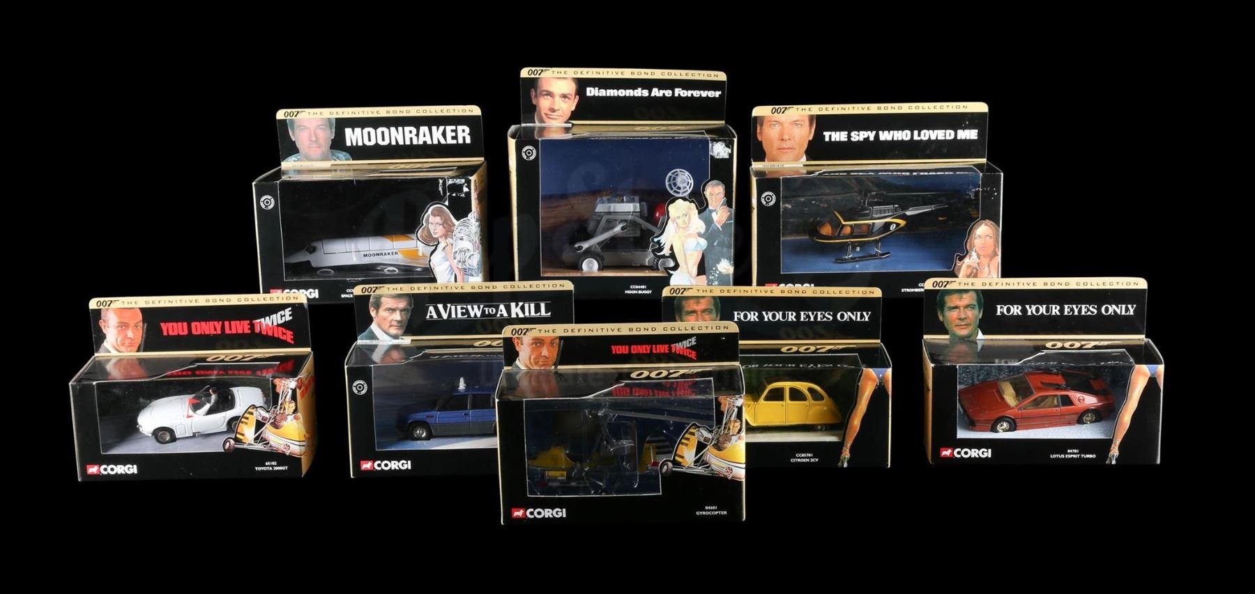 Eight 1:36 scale vehicles from the 007 Definitive Bond Collection. All in original packaging.