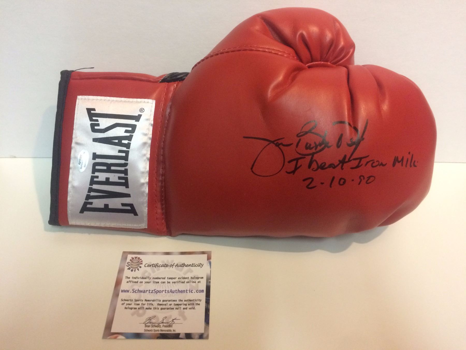 SIGNED BOXING GLOVE W/ INSCRIPTION I BEAT MIKE TYSON
