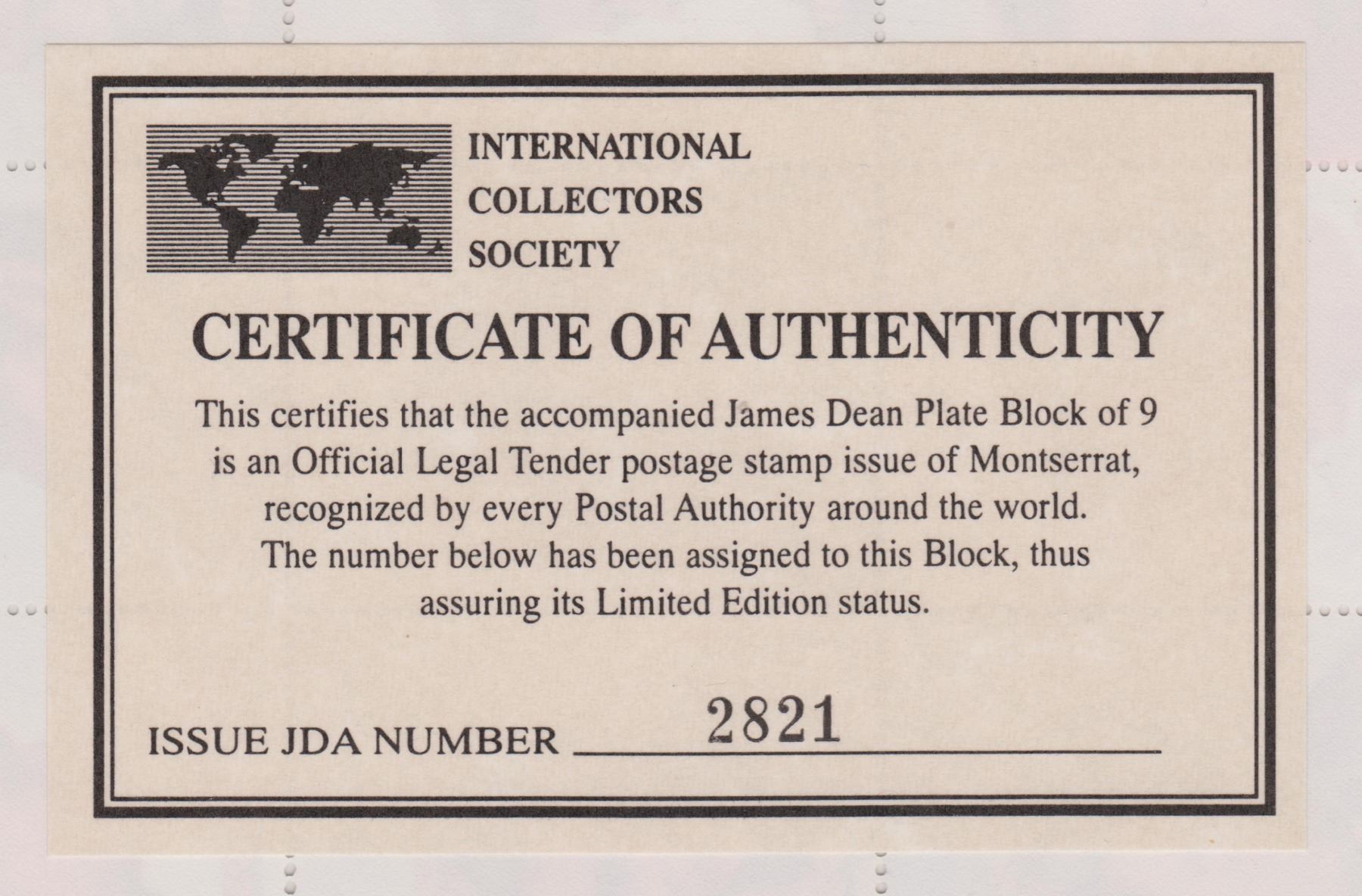 JAMES DEAN & DISNEY STAMPS (CERTIFICATES) (15.75)