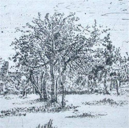 This etching was drawn from the nature in the village of Oudenbourg near Ostend.