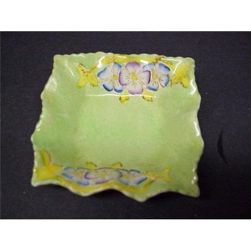 PRETTY HAND PAINTED SMALL SQUARE DISH, MADE BY JAMES KENT LTD., LONGHTON, MADE IN ENGLAND #1156, EXCELLENT CONDITION BUT FOR TWO TINY NICKS UNDERNEATH THE EDGE OF THE DISH, NOT VISIBLE UNTIL THE DISH IS TURNED OVER, MEASURES ABOUT 3" SQUARE., AND 1/2" HIGH.