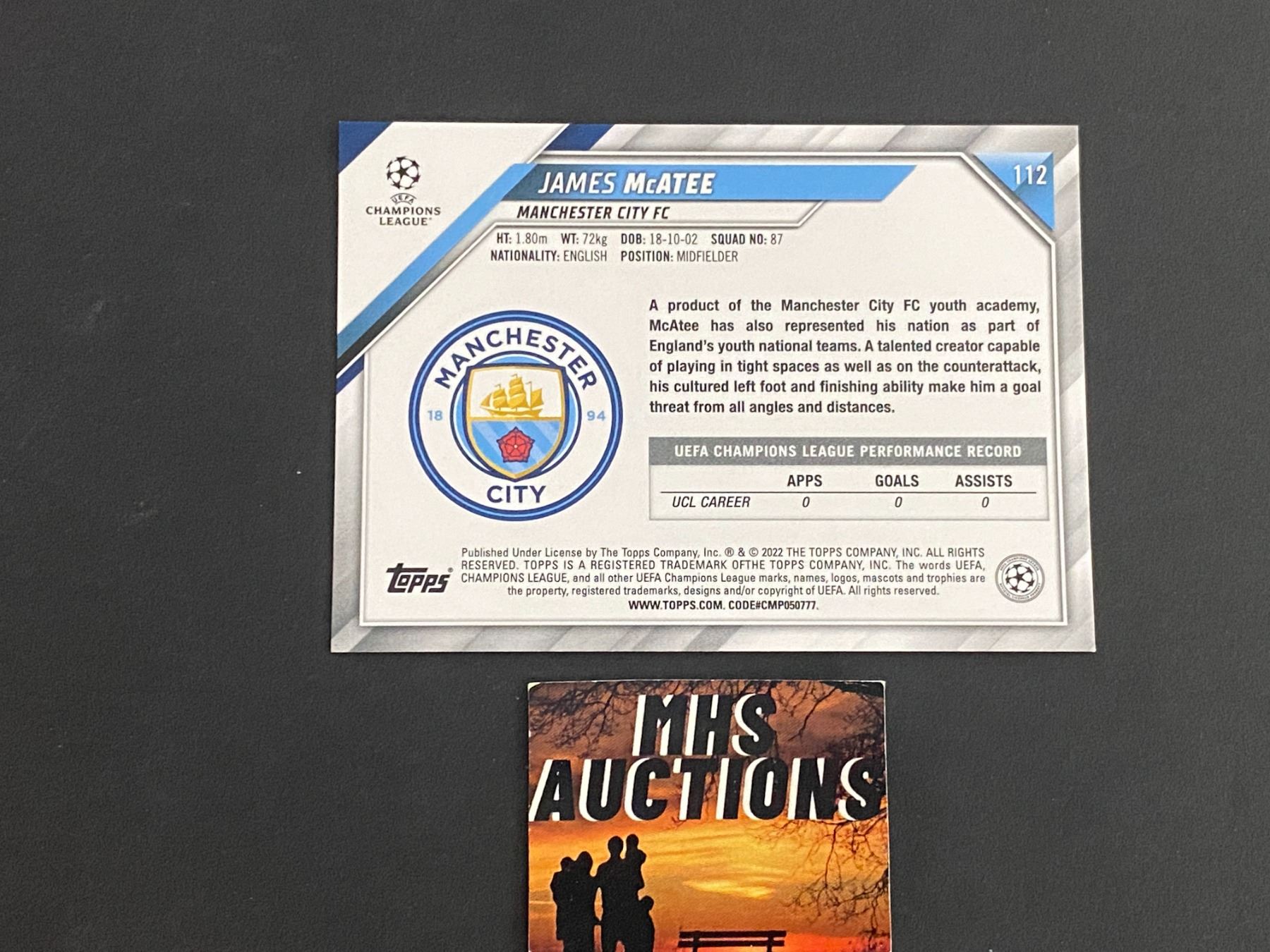JAMES MCATEE 2022 TOPPS SOCCER ROOKIE CARD