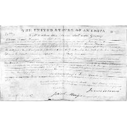 <b>161. JAMES MONROE </b>Partly-printed D.S. as President, 1p. sm. folio, Washington, Feb. 7, 1822, a grant of 80 acres of land in Ohio to one Samuel Heninger. Very light damp stain along folds, very nicely signed, overall quite good.<b> $400-500</b>