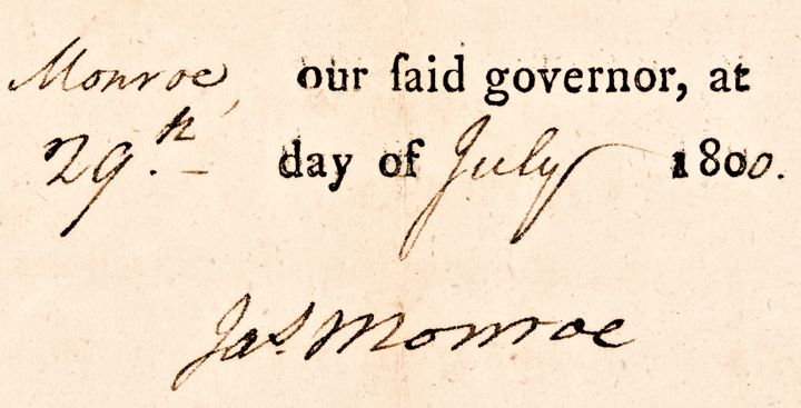 JAMES MONROE, Signed 1800 Virginia Military Appointment