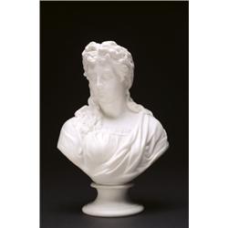 JAMES & THOMAS, BEVINGTON PARIAN BUST OF A WOMAN, after the Antique, on a socle base, factory f...