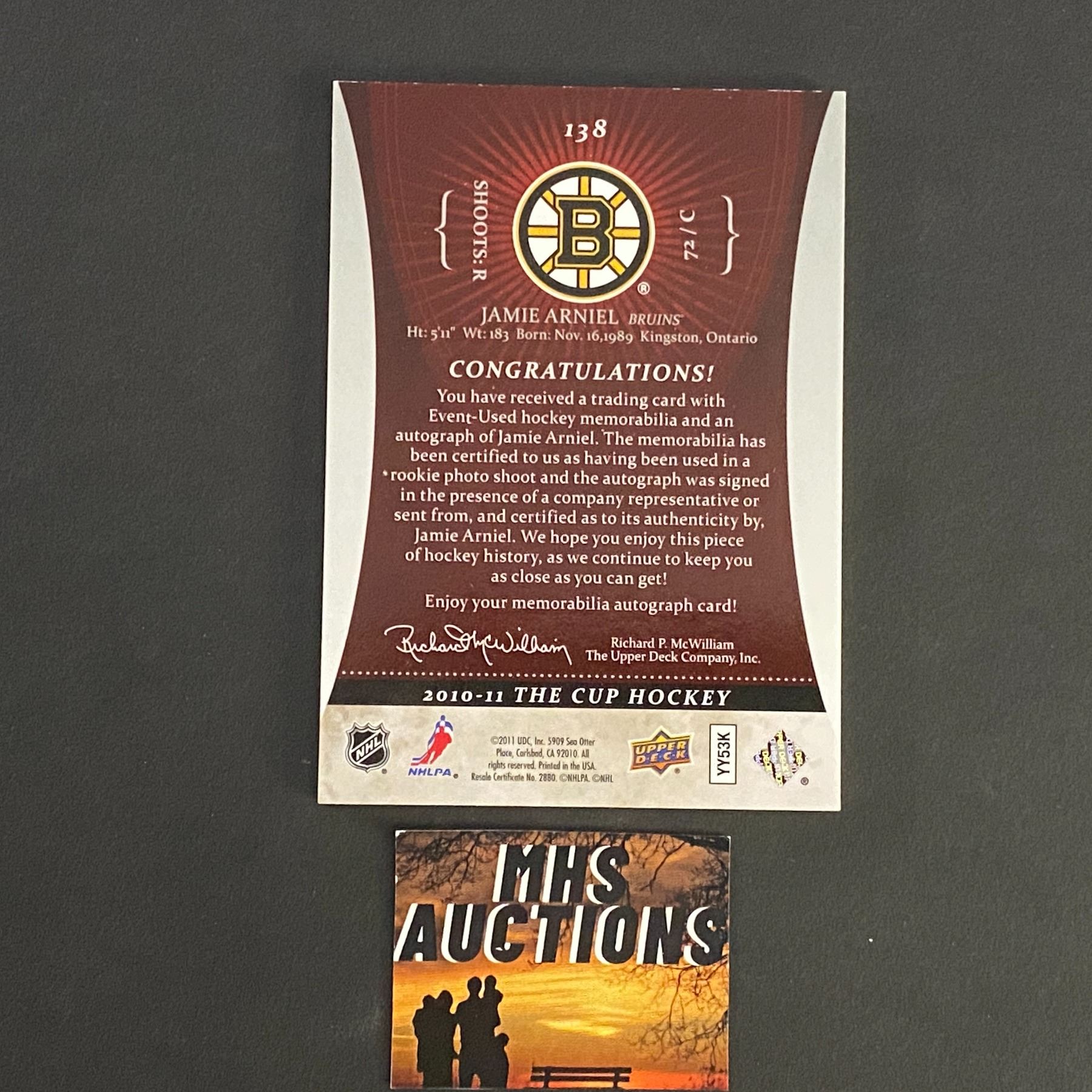 JAMIE ARNIEL 2010-11 THE CUP AUTO/PATCH CARD #193/249