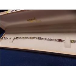 NEW BRACELET - (9) OVAL FACETTED MULTI-GEMSTONE & DIAMONDS IN STERLING SILVER SETTING - SUGGESTED RETAIL $425