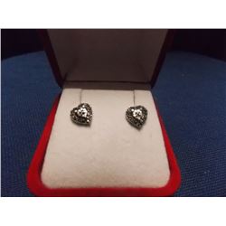 NEW EARRINGS - NEW BLACK DIAMOND EARRINGS - HEART-SHAPE CLUSTER DESIGN - STERLING SILVER SETTING - POST & BUTTERFLY - RETAIL ~$550