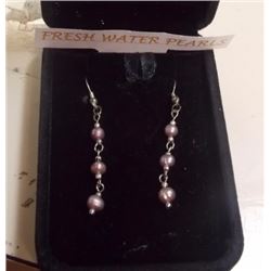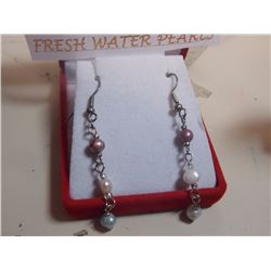 EARRINGS - FRESH WATER PEARLS SET IN 925 SILVER DANGLE DESIGN - FROM ESTATE - SUGGESTED RETAIL $50