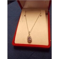 NECKLACE - PEAR FACETTED AMETHYST & DIAMOND IN STERLING SILVER SETTING - 2 VS CLARITY DIAMONDS - SUGGESTED RETAIL $400