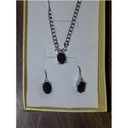 NECKLACE & EARRING 3PC SET - 3TCW OVAL FACETTED DEEP RED BROWN GARNET & ROUND FACETTED DIAMOND IN ST37 - NECKLACE & EARRING 3PC SET - 3TCW OVAL FACETTED DEEP RED BROWN GARNET & ROUND FACETTED DIAMOND IN ST