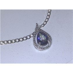 NECKLACE - 2CT PEAR FACETTED LIVELY BLUE PURPLE MYSTIC TOPAZ & ROUND FACETTED DIAMOND IN STAMPED 92540 - NECKLACE - 2CT PEAR FACETTED LIVELY BLUE PURPLE MYSTIC TOPAZ & ROUND FACETTED DIAMOND IN STAMPED 925