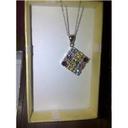 NECKLACE - 2.26 TCW (8) ROUND FACETTED GEMSTONES & (1) DIAMOND IN STAMPED 925 STERLING SILVER SETTING - INCLUDES STERLING SILVER CHAIN - INCLUD...