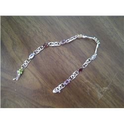 NEW BRACELET - MULTI-GEMSTONE & DIAMONDS IN STERLING SILVER SETTING - 9 OVAL FACETTED STONES - RETAIL APPROX. $425 =RECTANGLE LINKS
