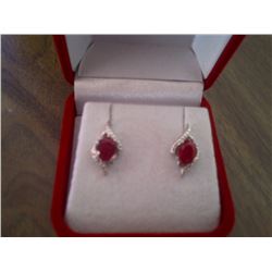 EARRINGS - 2.12 TCW OVAL FACETTED RUBIES & ROUND FACETTED DIAMONDS IN STAMPED 925 STERLING SILVER SE45 - EARRINGS - 2.12 TCW OVAL FACETTED RUBIES & ROUND FACETTED DIAMONDS IN STAMPED 925 STERLING SILVER SE