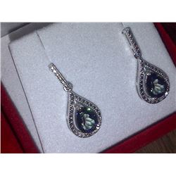 EARRINGS - 2.2 TCW PEAR FACETTED LIVELY BLUE PURPLE MYSTIC TOPAZ & ROUND FACETTED DIAMONDS IN STAMPED 925 STERLING SILVER SETTING - PLATINUM OVE...