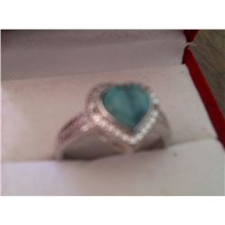 RING - 1.7CT HEART FACETTED RICH GREEN EMERALD & 2 ROUND FACETTED ACCENT SHOULDER DIAMONDS IN STAMPED 925 STERLING SILVER BEZEL SETTING - INCLU...