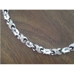 BRACELET - 12 OVAL FACETTED WHITE TOPAZ & DIAMONDS IN STERLING SILVER INFINITY LINK SETTING - ESTIMATE RETAIL $375