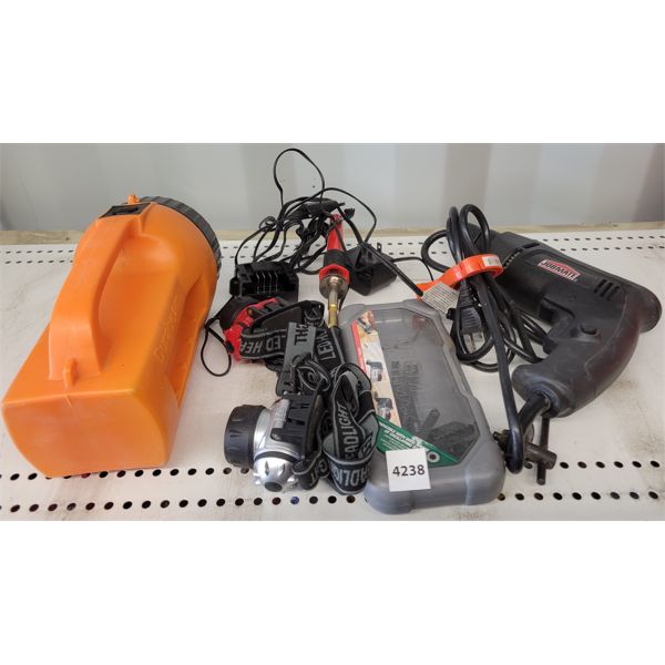 JOB LOT - INCL HEADLAMPS, FLASHLIGHT, MULT-TOOL BLADES ETC.