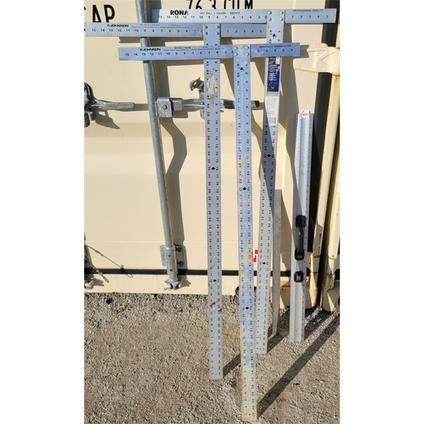 LOT OF 5 - SQUARES, RULER AND LEVEL