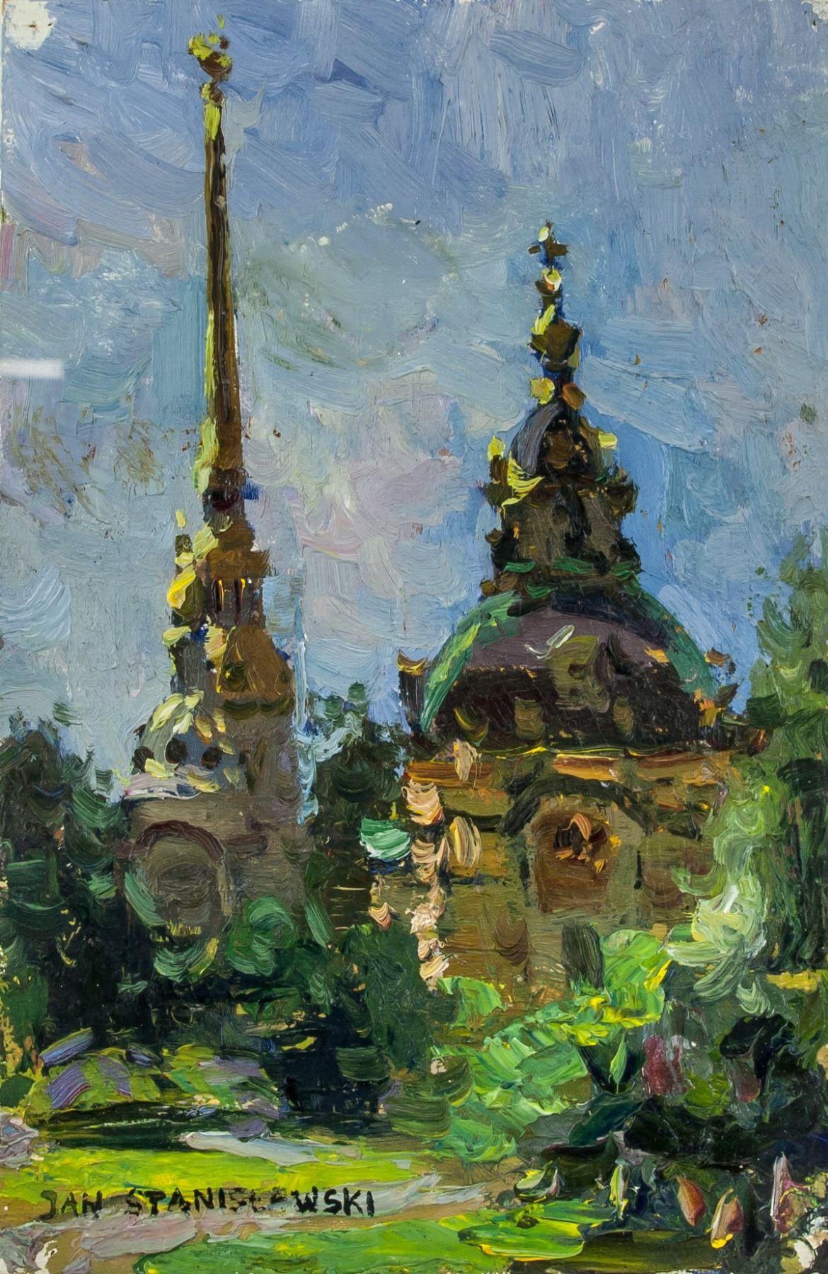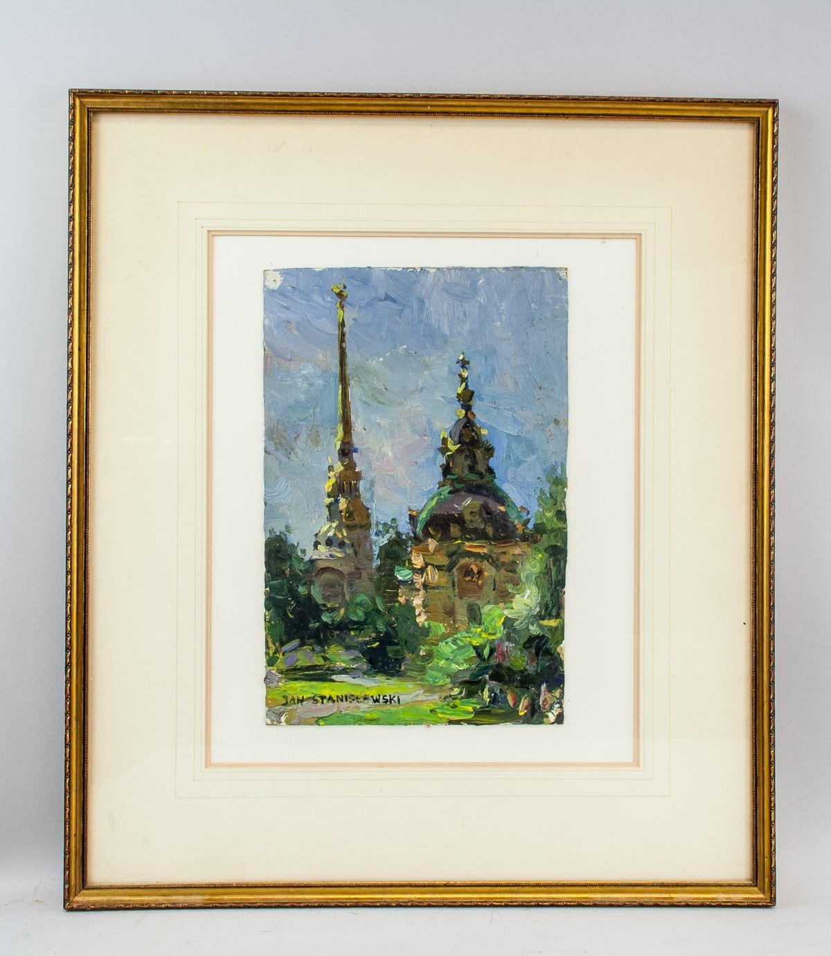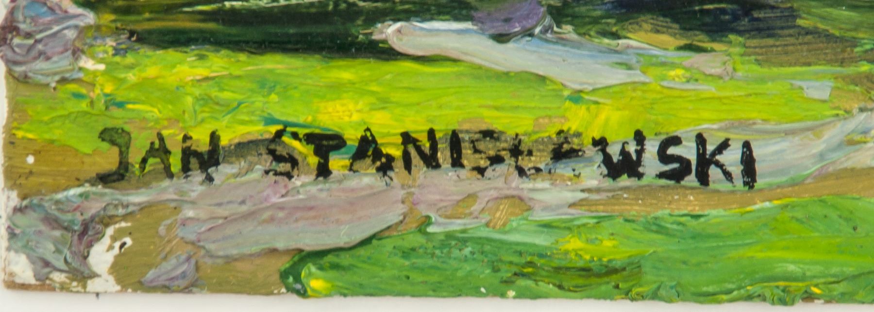 Oil on paper, framed. Featuring landscape scene. Signed and attr. Jan Stanislawski (Polish, 1860-1907) on the lower left corner. 34.5 x 23 cm (13.6 x 9.1 inches). Frame size: 60.5 x 53 cm (23.8 x 20.9 inches). Jan Stanislawski was a Polish modernist painter, art educator, and founder and member of various innovative art groups and literary societies. In 1906 he became a full professor at the Academy of Fine Arts in Kraków. His early works were exhibited at the inauguration of the Salon du Champ-de-Mars in Paris in 1890 and at the Kraków Society of Friends of Fine Arts in 1892. In the 1890s, he travelled extensively and his sketchbooks filled up with drawings from Berlin, Dresden, Prague, Kraków, and various places in Ukraine. Together with Julian Falat, he painted the landscape parts of Napoleon’s Army Crossing the Berezina, a panorama by Wojciech Kossak. He co-founded the Society of Polish Artists "Sztuka" ("Art") in Kraków in 1897. Later he became Deputy Chairman and finally Chairman of that society, and showed his works at numerous exhibitions organised by it. In 1898, he became a member of the Viennese Secession, and his works were exhibited among theirs in 1901, 1902 and 1905. In 1901, he became a founding member of the Polish Applied Arts Society. He worked in the Wawel Castle Reconstruction Committee and was involved in the activities of the Green Balloon (Zielony Balonik) Cabaret. After his death, two exhibitions were opened at the Palace of Art by the Kraków Society of Friends of Fine Arts in November 1907, one to show 154 of his oil paintings, as well as drawings and watercolours, and the other to present the works of his numerous outstanding students. Stanislawski was buried with honours at the Rakowicki Cemetery in Kraków.