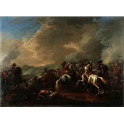 JAN WYCK the Netherlands 1640-1702 Bataljscen Oil on canvas, 54 x 72 cm; relined EXPERTISE: Cabinet Turquin, Mauduit, Etienne, Paris.