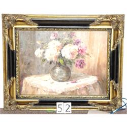 JANE (European 20th century) oil on canvas; 12 inches by 16 inches; "Floral Still Life"; signed lower right