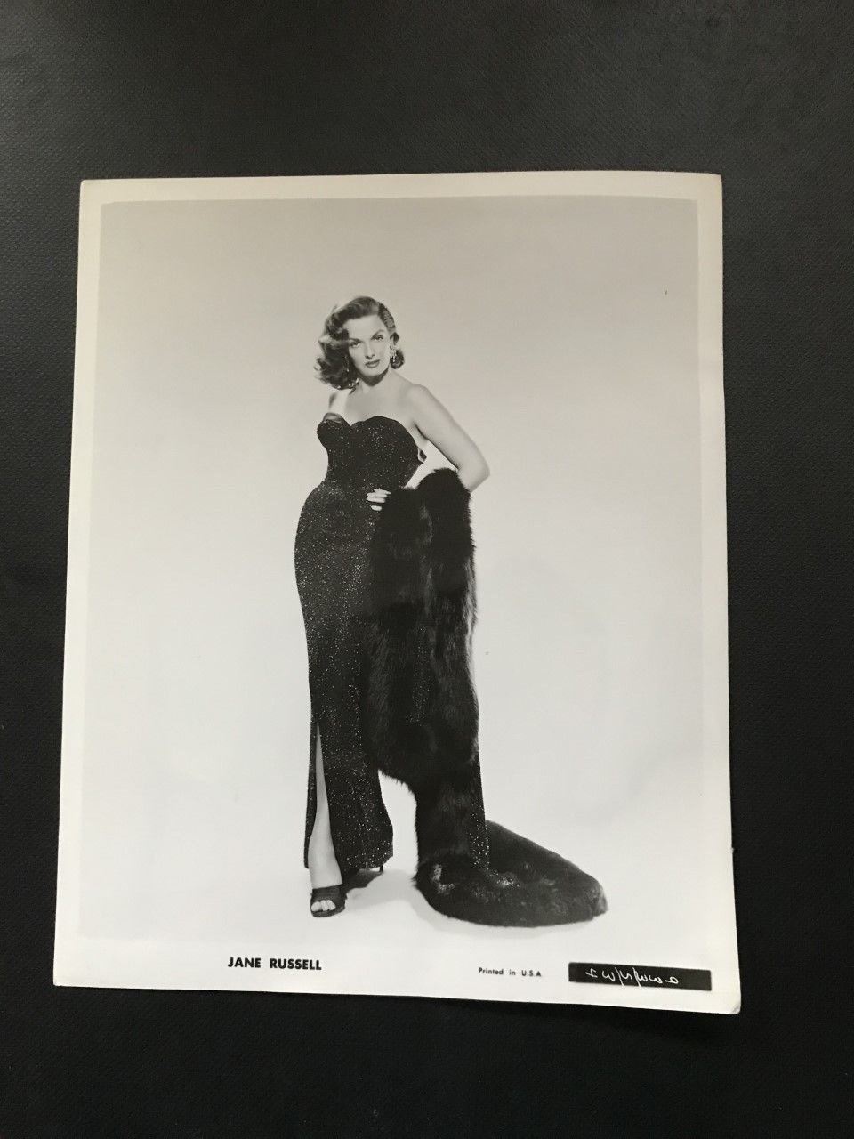 Vintage photo of Jane Russell in 1956. Silver gelatin. 10x8 inches. Condition: Good with some creasing and dents.