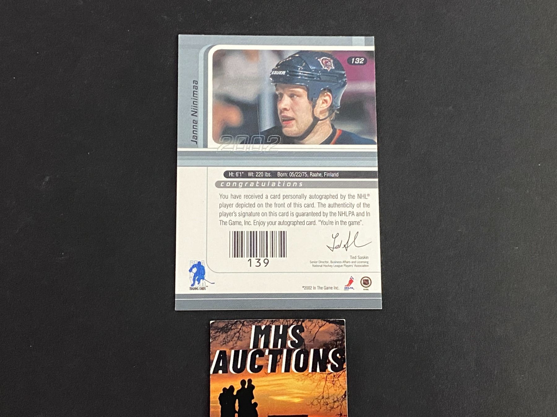 JANNE NIINIMAA 2002 IN THE GAME AUTOGRAPH CARD