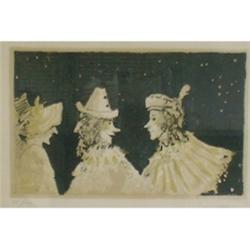 JANSEM, Jean, 1920-1990. "Au clair de la lune". Lithographie, signée et numérotée 77/120 au crayon. École française. Lithograph, pencil signed and numbered 77/120. French School. 6" x 9 1/2" - 15.2cm x 24.1cm. $450/650