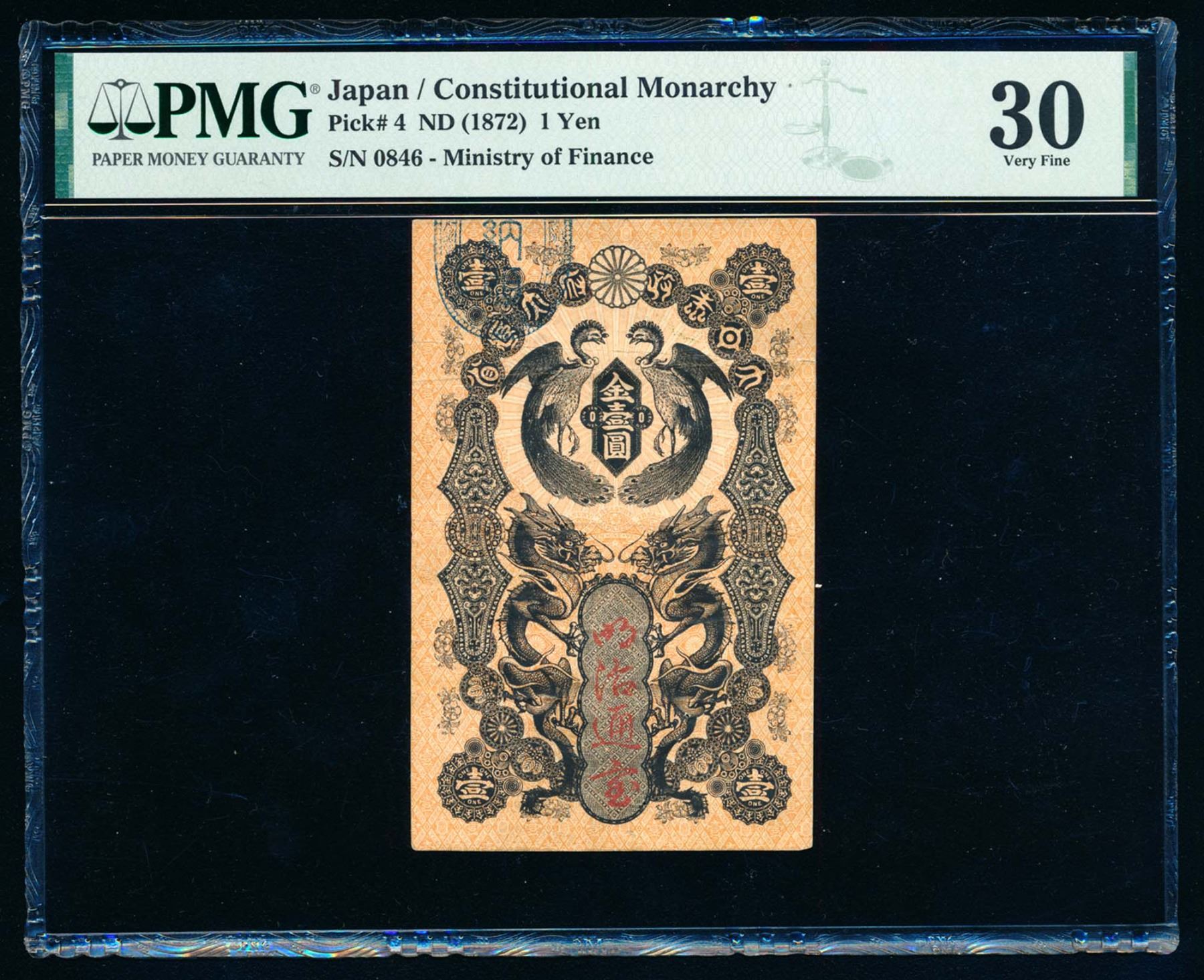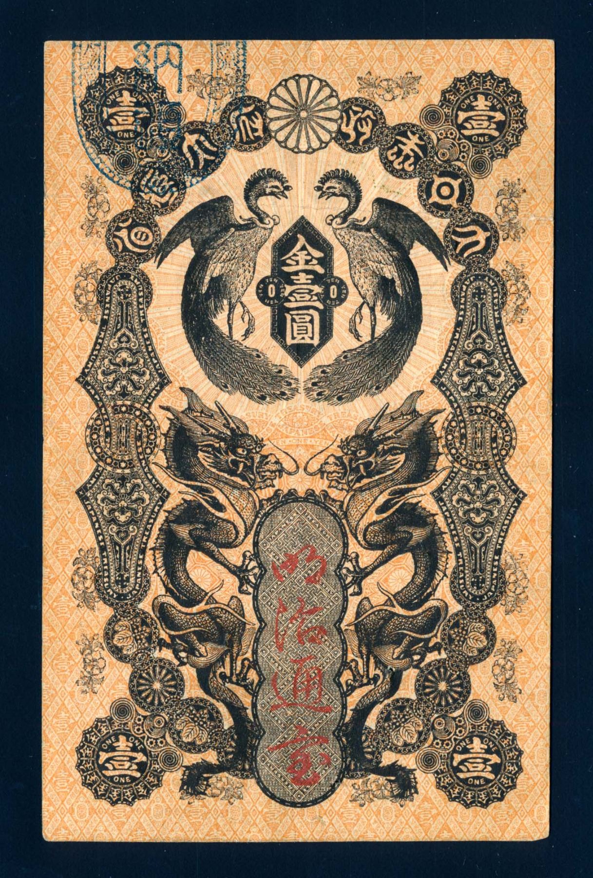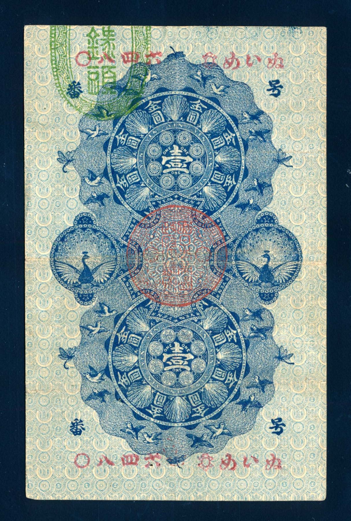 JAPAN 1 Yen 1872 P-4 110 mm. x 71 mm. Banknote Very Fine-30